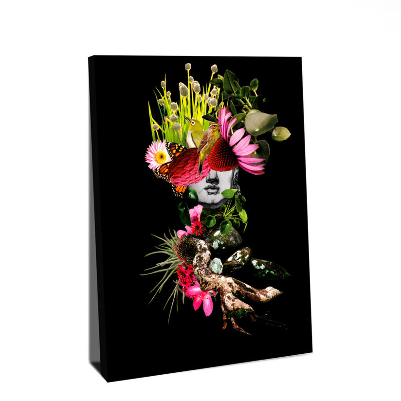 "Shaded" is a mixed media collage that seamlessly blends elements of nature with a classical statue, creating a striking contrast between organic and sculptural forms. The piece evokes a sense of timelessness and contemplation, where lush natural textures interact with the stoic presence of the statue, inviting viewers to explore the harmony between the two.